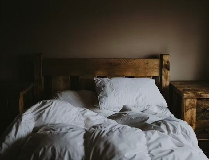 Returning to bed, where the darkness has lifted, and the stillness embraces me with its silence, I slide in between the cool sheets.